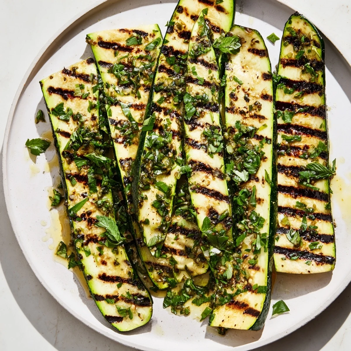Zucchini in Kräutermarinade kurz grillen für ein leichtes, aromatisches Sommergericht.