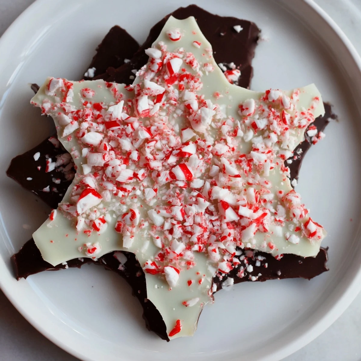 Merken Peppermint Bark Snowflakes sind eine festliche, minzig-süße Leckerei mit Schichten aus reichhaltiger Schokolade und cremiger weißer Schokolade, bedeckt mit knusprigen Pfefferminzbonbons und zu charmanten Schneeflocken geformt – perfekt für Weihnachtsgeschenke oder Partys.