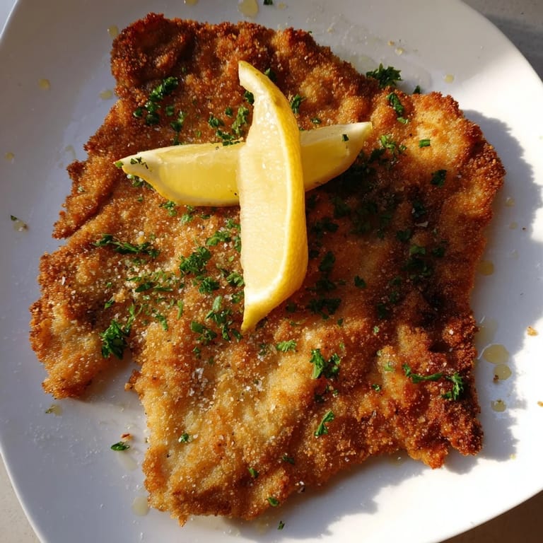 Merken The first time I truly understood what made a Wiener Schnitzel special, I was standing in a small kitchen in Vienna, watching an elderly woman work with just four ingredients and absolute confidence. She moved through each step without hesitation, and when that golden cutlet hit the plate with a crisp snap that echoed through the kitchen, I realized this wasn't about fancy technique—it was about respecting the simplicity and getting every detail right. That sound, that golden crust, the way the meat stayed impossibly tender inside—I've been chasing that perfection ever since.