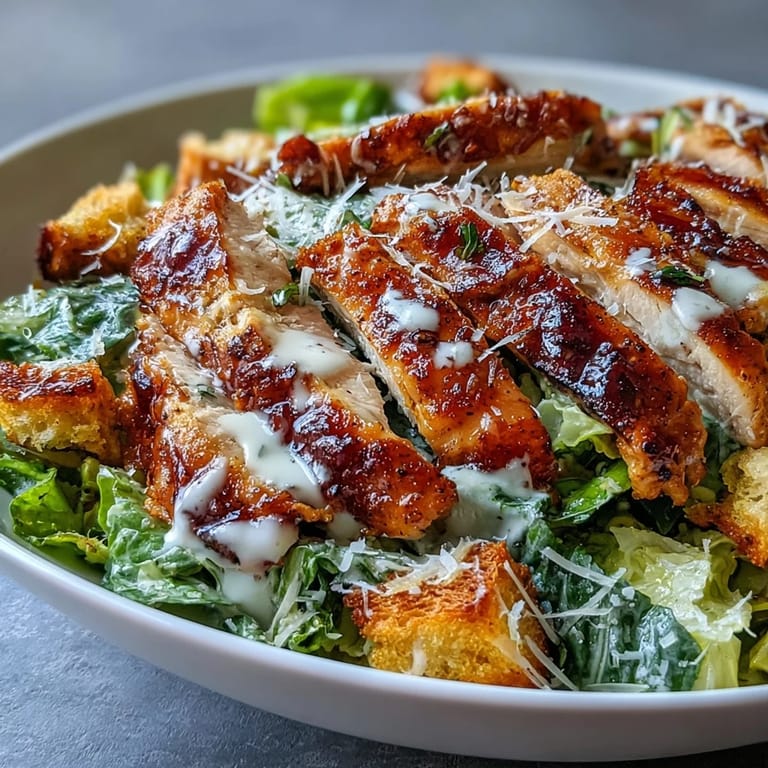 Merken My neighbor stopped by one afternoon with a bag of romaine from her garden, and we ended up assembling these bowls right there on her patio while debating whether croutons could ever be too crispy. The chicken came out perfectly juicy, the dressing tasted like a restaurant version, and somehow we both finished eating before realizing how satisfying it was. That's when I knew this bowl had staying power, the kind of meal that feels light but actually keeps you full for hours.