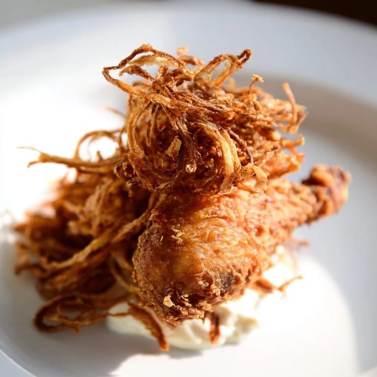 Du kannst die Hähnchenschenkel durch Hähnchenbrustfilets ersetzen, aber dann musst du die Bratzeit etwas anpassen, da die Brust schneller trocken wird. Wenn du es schärfer magst, misch etwas Hot Sauce in die Aioli oder füge eine Prise Cayennepfeffer zur Panade hinzu. Auch ein Spritzer Honig in der Aioli sorgt für eine interessante süß-pikante Note. Manche mögen eingelegte Gurken oder einen frischen Krautsalat als Beilage, das bringt Frische und Säure ins Spiel.