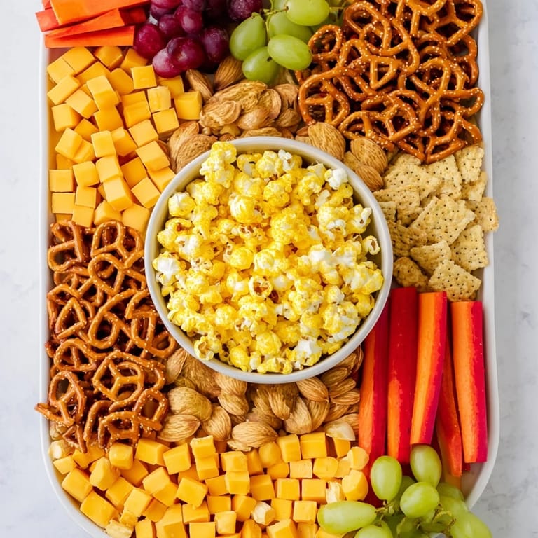- Frisch gepopptes Popcorn oder buntes Popcorn (6 Tassen): Das Herzstück der Platte—wähle hochwertige Körner und würze sie nach Lust und Laune, damit sie nicht zu langweilig werden.
