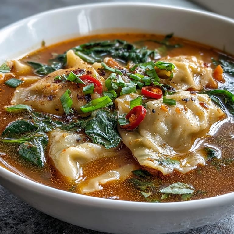 Merken There's something about a steaming bowl of red curry wonton soup that stops me mid-afternoon, like the universe is reminding me to pause and actually taste my lunch. I discovered this particular combination on a rainy Tuesday when I had half a can of coconut milk, a bag of frozen wontons, and zero energy for anything complicated. Twenty-five minutes later, my tiny kitchen smelled like a Thai market, and suddenly the whole day felt manageable again.