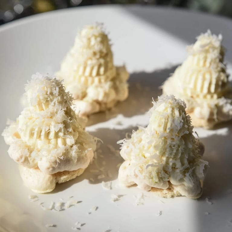 Merken Experience the charm of winter with the Table dHiver Sapin et Flocons, a festive dessert inspired by snowy pine trees and delicate snowflakes. This elegant French creation layers a pistachio-almond sponge cake with silky white chocolate mousse, finished with a magical sprinkle of shredded coconut mimicking fresh snow. Perfect for holiday celebrations, it brings both beauty and indulgence to your table.